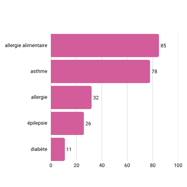 Chaque professionnel de la petite enfance était invité à indiquer les différentes pathologies qu'il avait déjà rencontré, nécessitant la mise en place d'un PAI.