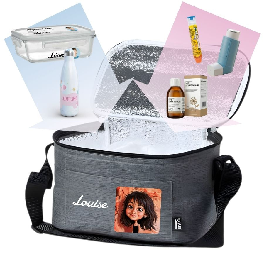 Cette glacière isotherme personnalisable peut servir aussi bien à transporter le panier repas de votre enfant à l'école que des médicaments sensibles à la chaleur.