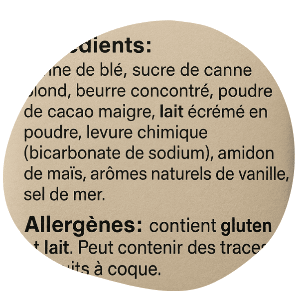 Voici la liste complète des 14 allergènes à déclaration obligatoire en Europe, qui doivent absolument apparaître s'ils sont présents dans la liste des ingrédients d'un produit :