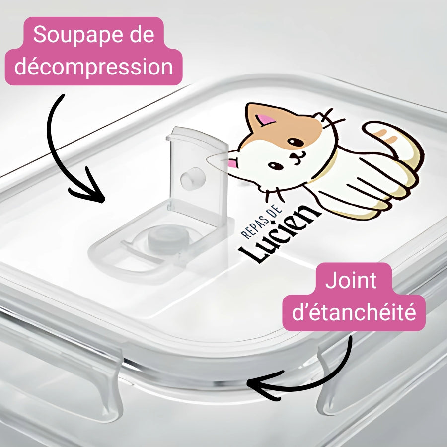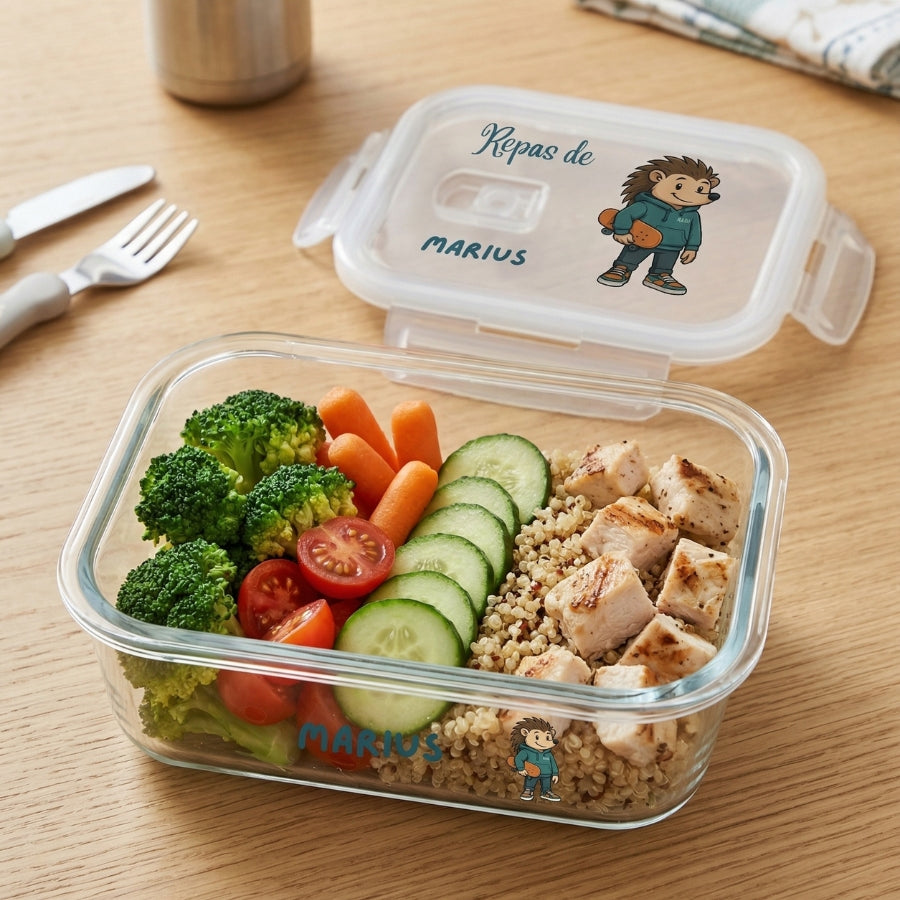 En personnalisant à la fois le couvercle ET la boîte à repas de votre enfant, vous vous assurez une traçabilité de son plat de A à Z.