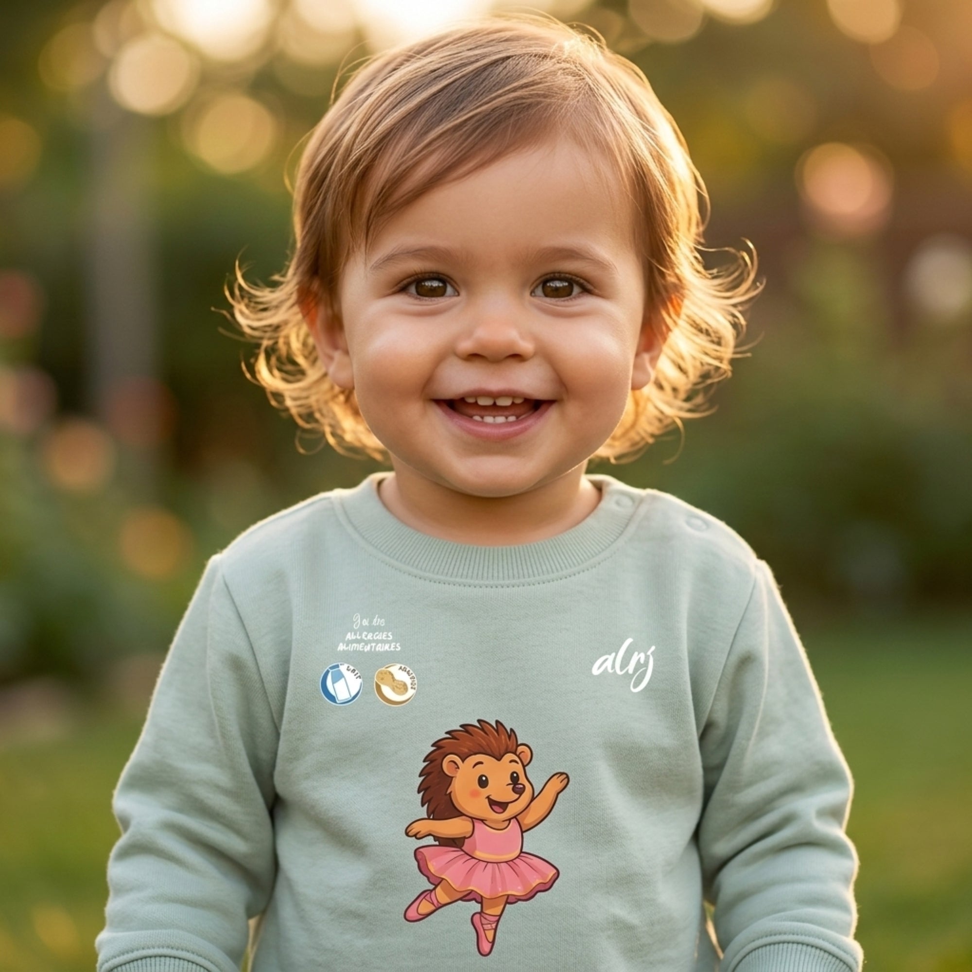 Ce pull permet de signaler de manière visible et ludique que votre enfant a des restrictions alimentaires. Le motif ludique attire l'attention des adultes (nounous, famille, enseignants) pour qu'ils ne donnent aucune nourriture sans votre accord.