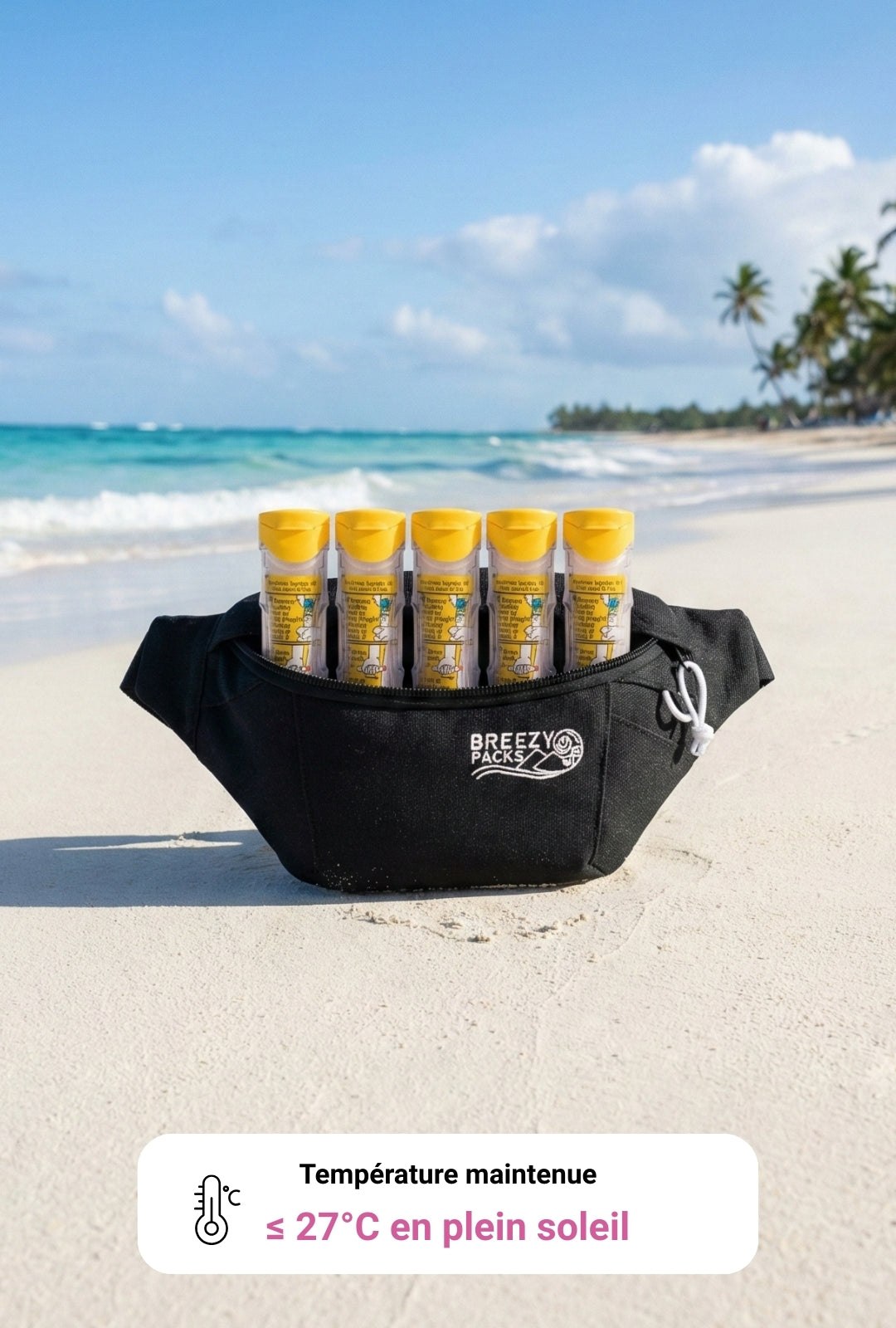 Contrairement aux trousses classiques avec des packs de glace (qui fondent !), la banane Breezy utilise un changement de phase physique qui maintient automatiquement vos médicaments sous 27°C.